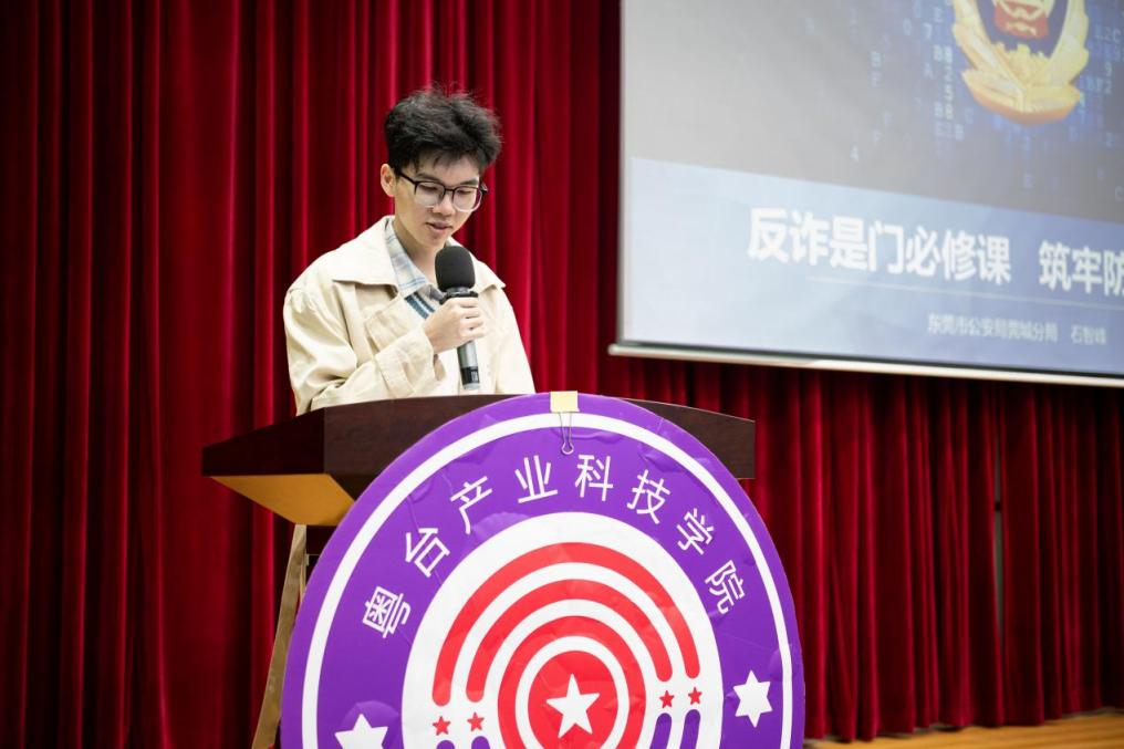2025年11月3日晚,莞城校区学术报告厅内掌声雷动,由东莞市莞城公安局与探花av 联合举办的防诈骗教育宣传讲座在此隆重举行。活动现场同学们聆听了这场贴近生活、内容翔实的反诈知识讲座。