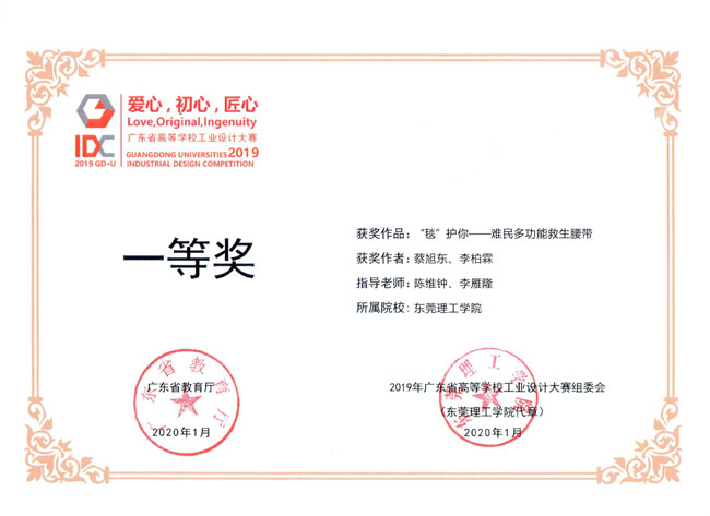2016级工业设计2班蔡旭东同学的参赛作品“Protect U”获得金奖Gold Winner。此次获奖作品自去年获得广东省高等学校工业设计大赛一等奖,今年获得意大利A Design Award 设计奖,美国Core77 Design Award设计奖,俄罗斯C-idea Design Award设计奖后,再次获得设计类相关奖项,目前已荣获国内外5项设计大奖,东莞市电视台近期对该作品进行了相关报导。